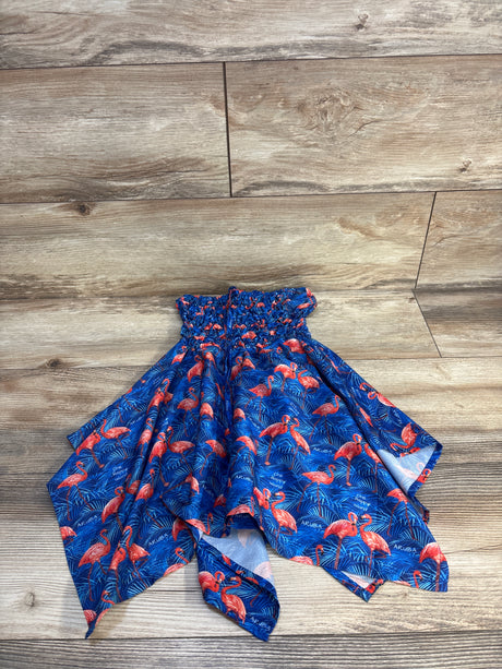 Rima Flamingo Print Popcorn Dress Blue sz 2-5T