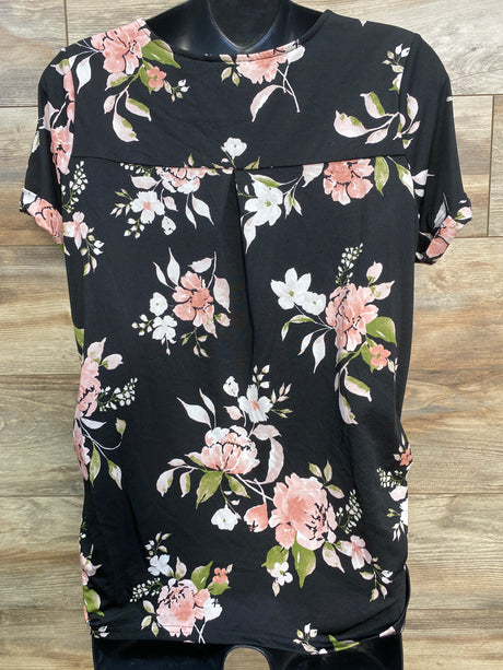 Sweet Wander Floral 1/4 Zip Ruched Shirt Black sz Large