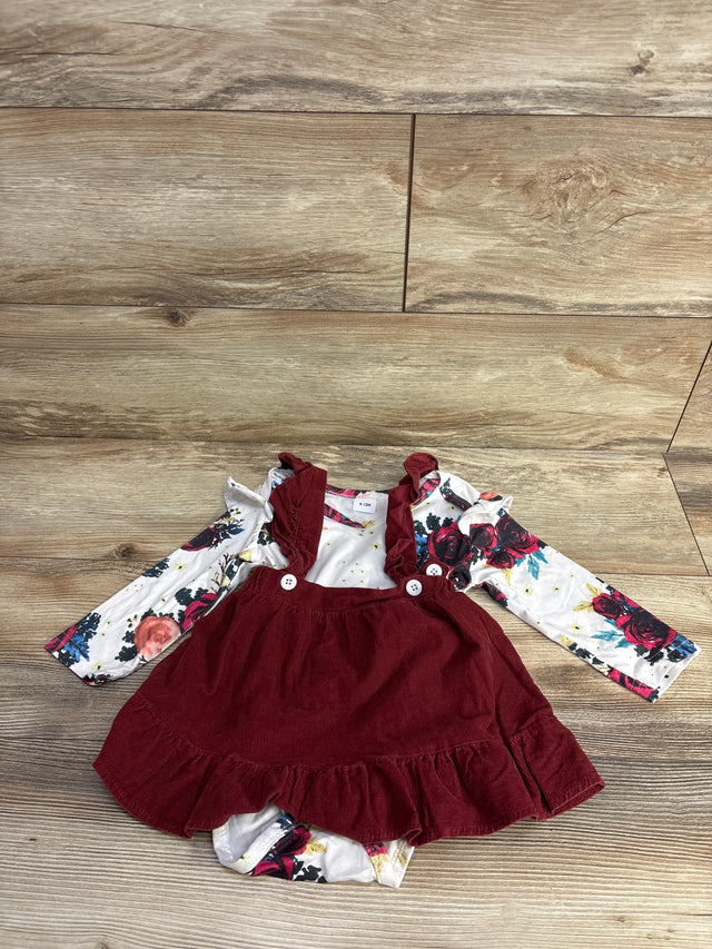 2pc Floral Shirt & Ruffled Cord Overalls White sz 9-12m