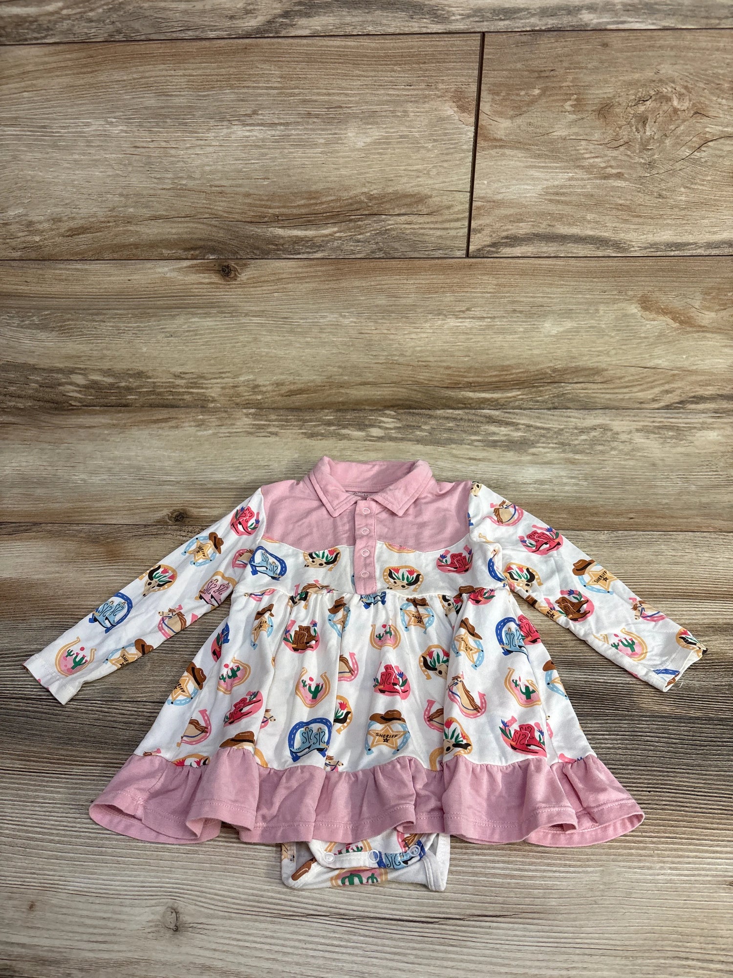 Angel Dear Cowboy Bodysuit Dress Western Horses Pink sz 12-18m