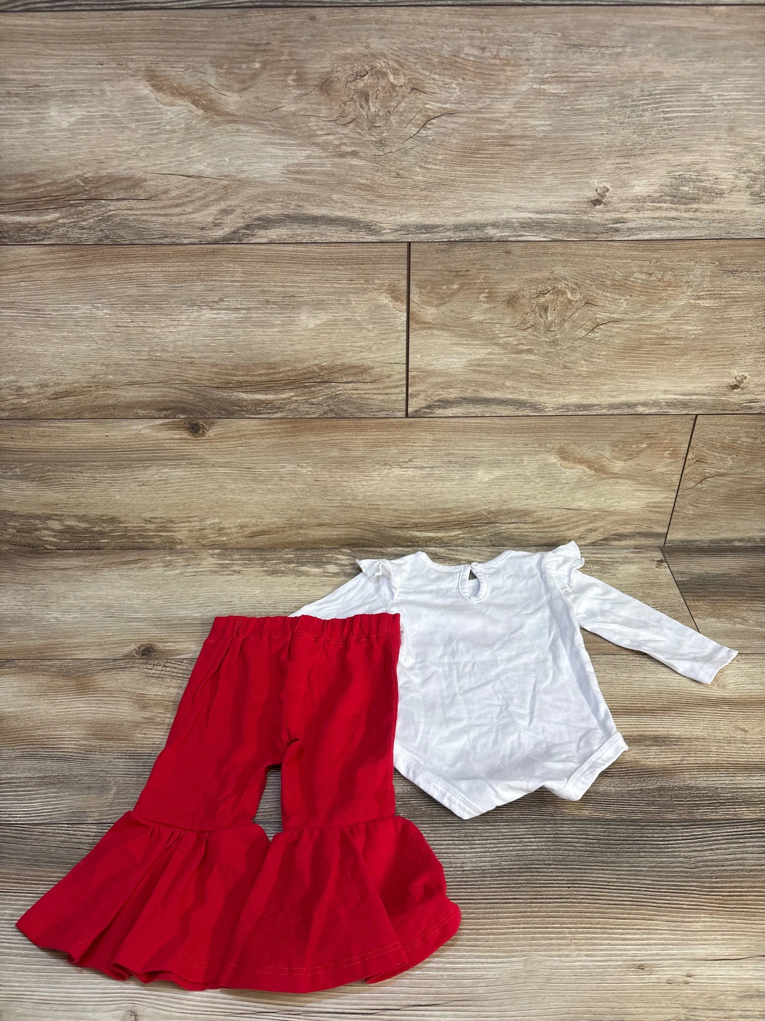 Baby Essentials 2pc Textured Love Bodysuit & Bell Bottoms Set White sz 9m