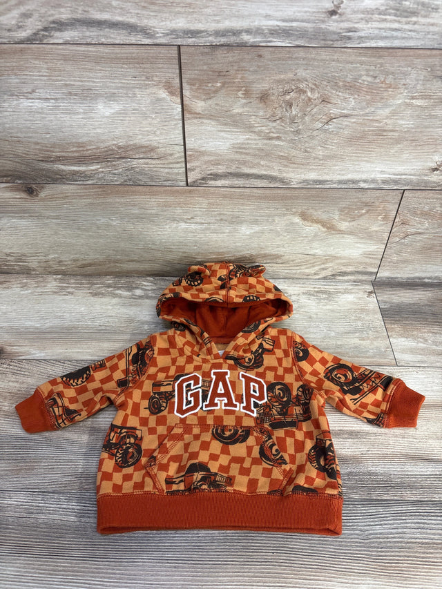 Baby Gap Pull Over Monster Truck Hoodie Rust sz 3-6m