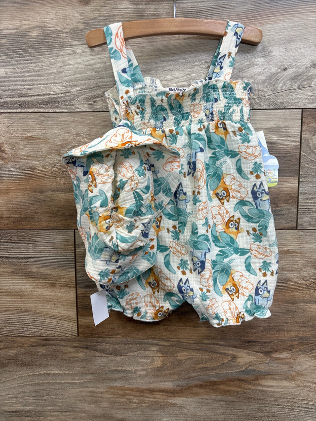 NEW Bluey 2pc Gauze Romper & Hat Set In Ivory sz 12m