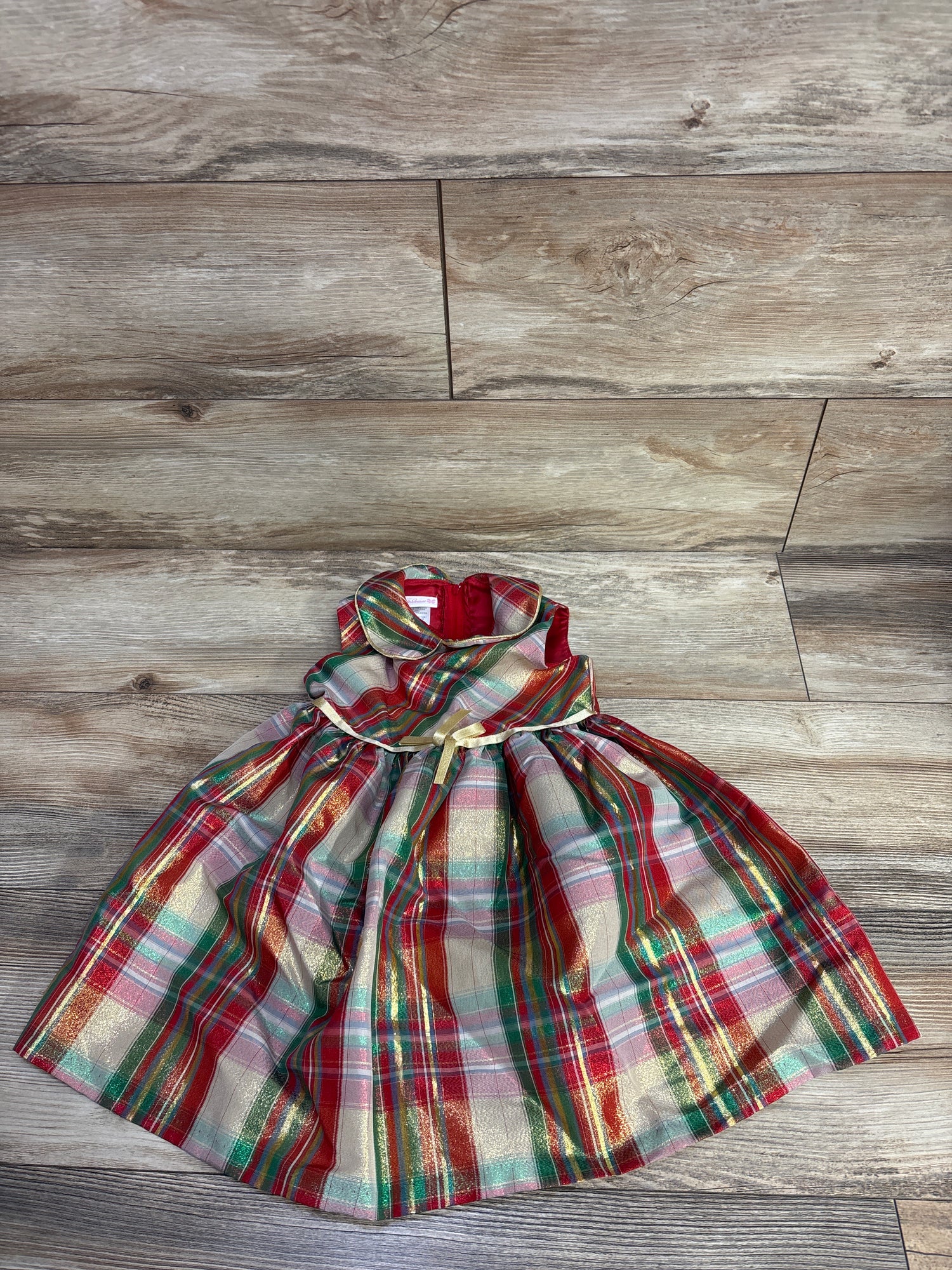 Bonnie Jean Metallic Plaid Dress Red sz 3T