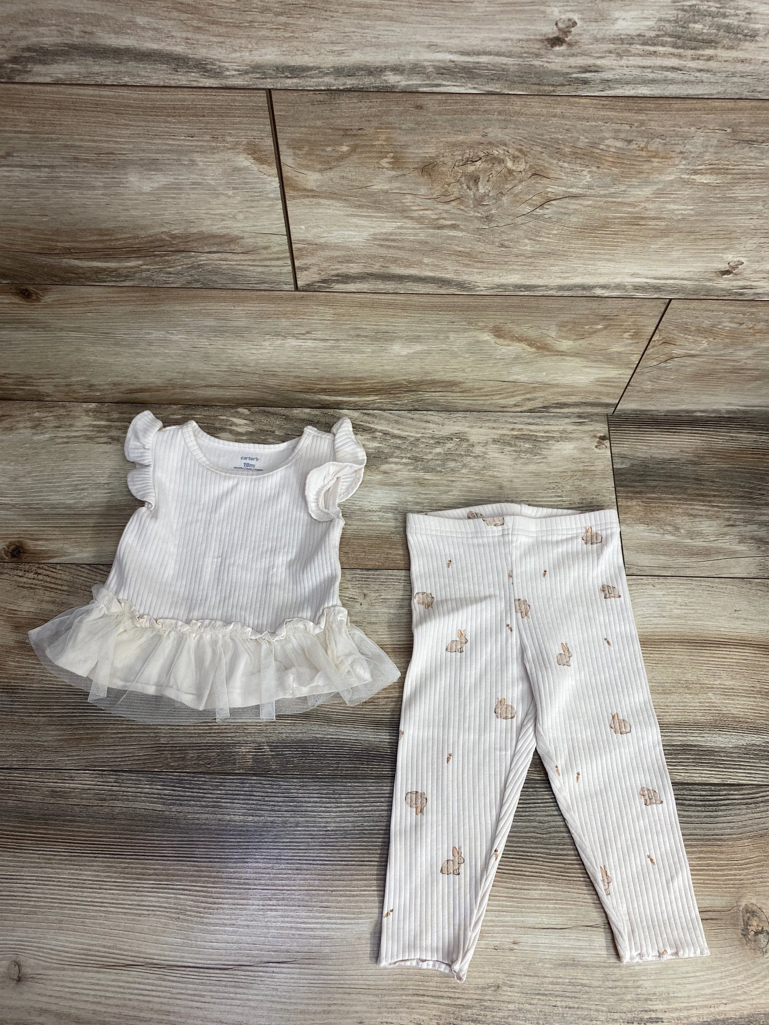Carter's 2pc Ribbed Peplum Tulle Top & Bottoms Set Cream sz 18m