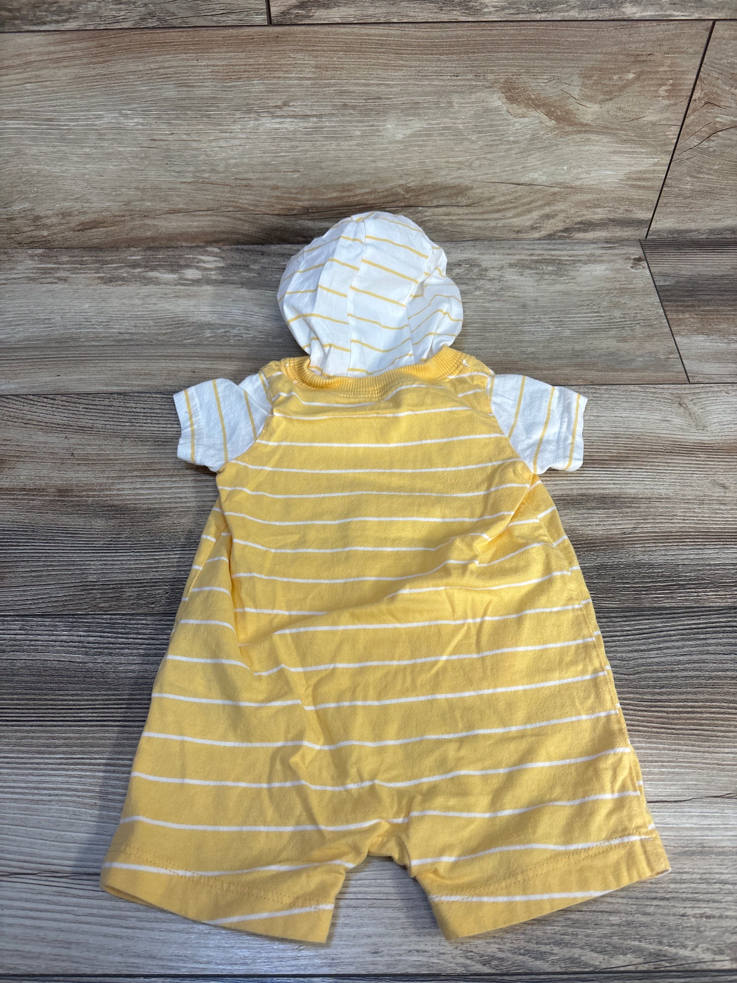 Carter's Shark Print Hooded Striped Shortie Romper Yellow sz 6m