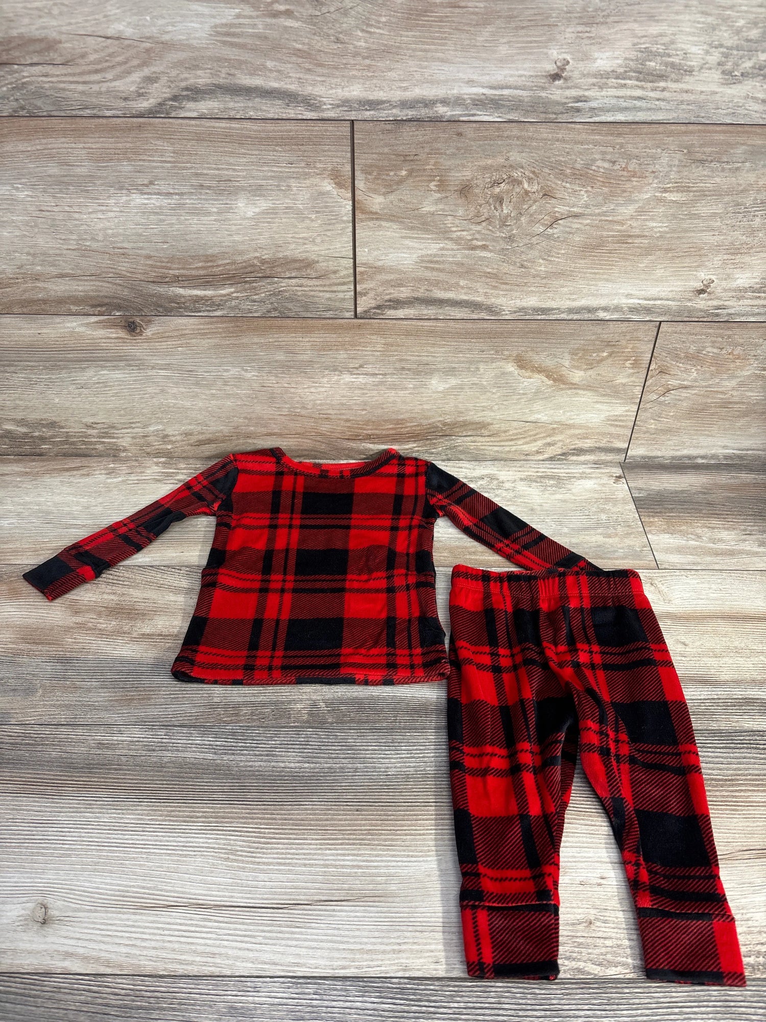 Cat & Jack 2pc Velour Buffalo Plaid Pajama Set Red sz 12m