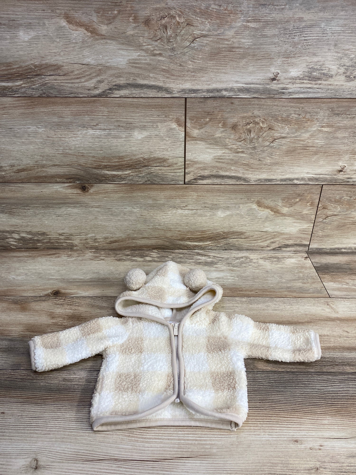 Cat & Jack Sherpa Checkered Full Zip Jacket Ivory sz Newborn