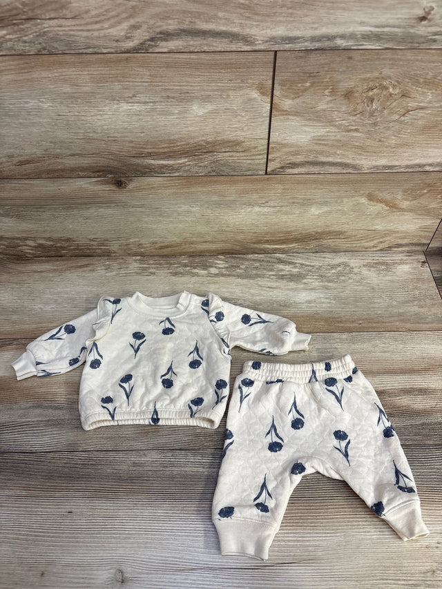 Child Of Mine 2pc Textured Floral Sweatshirt & Joggers Set Cream sz 0-3m