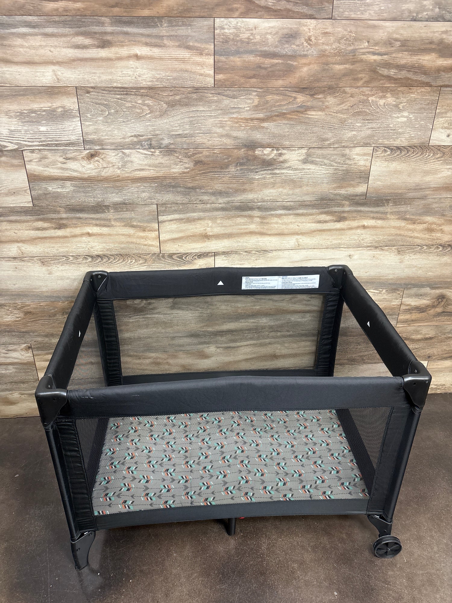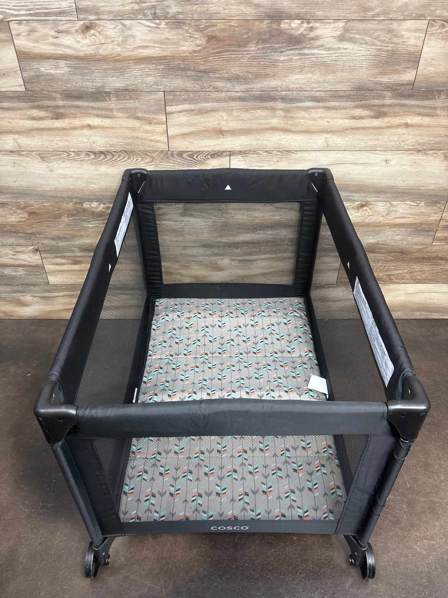 - 4 mesh sides with padded floor let baby see the action