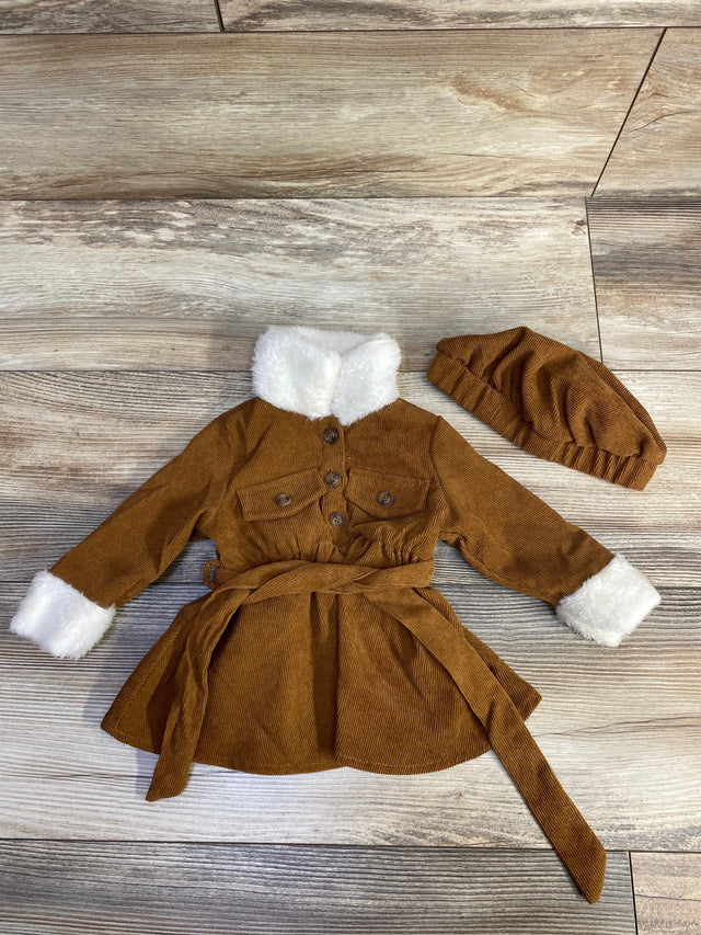 Cozy Cub 2pc Corduroy Faux Fur Dress & Hat Caramel sz 0-3m