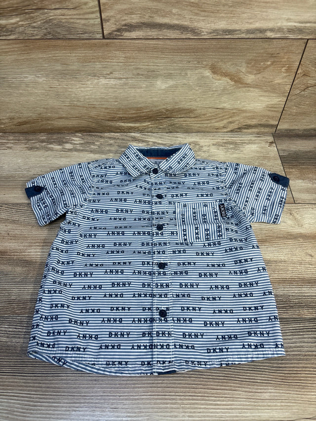 DKNY Logo Striped Button Up Shirt Blue sz 24m