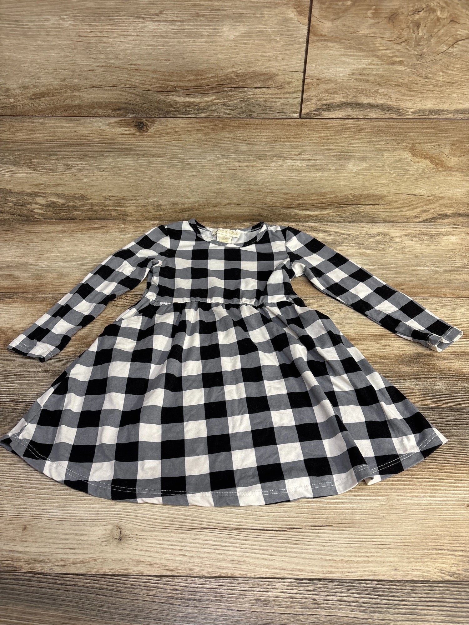 Emma & Elsa Checkered Long Sleeve Dress Grey sz 2T