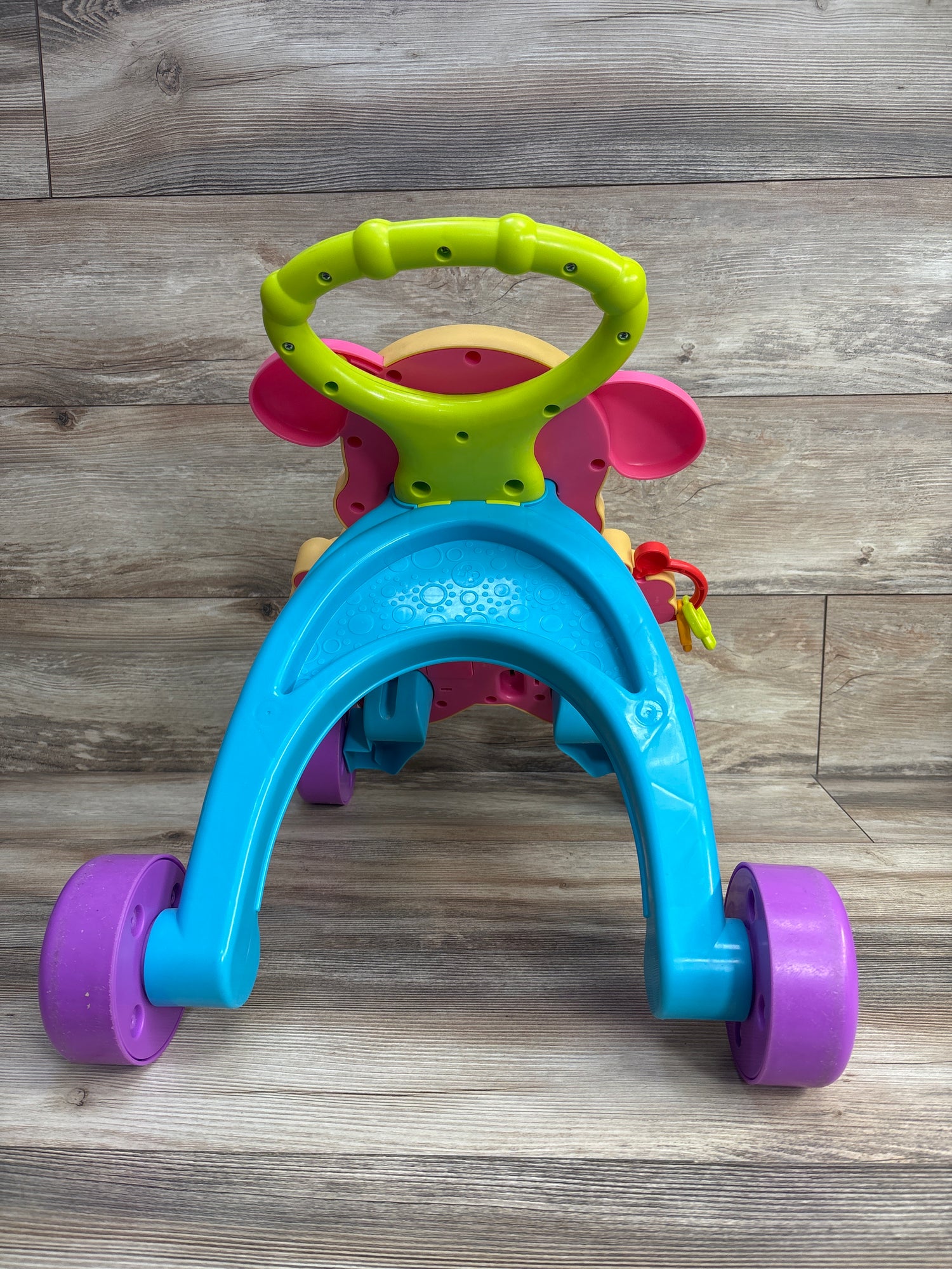 - Easy-grasp handle and sturdy, 4-wheel base helps steady baby's first steps