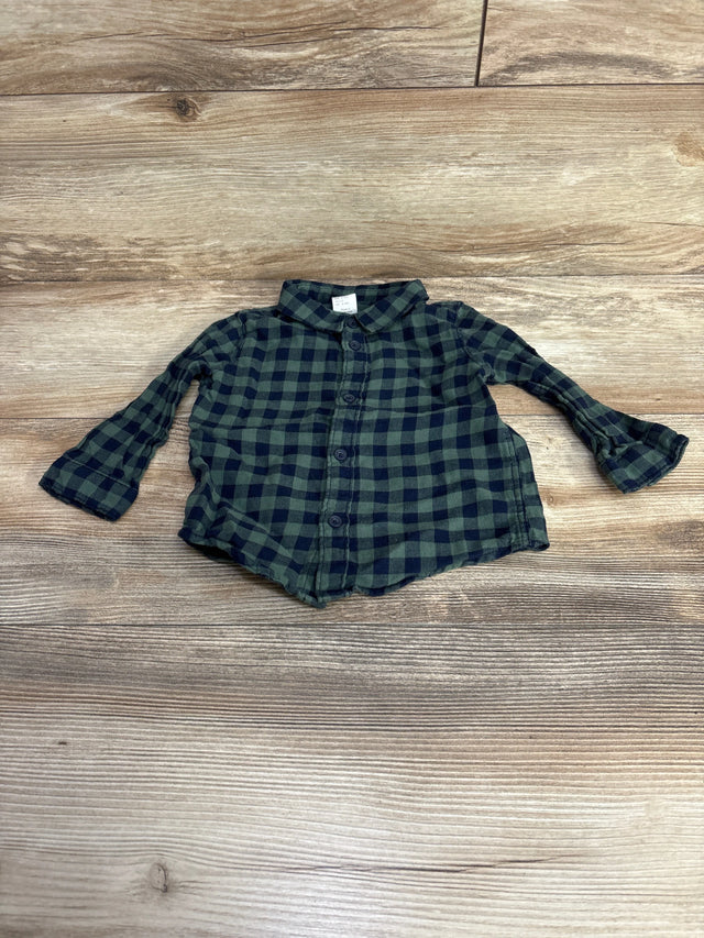 H&M Plaid Button Up Flannel Shirt Green sz 9m