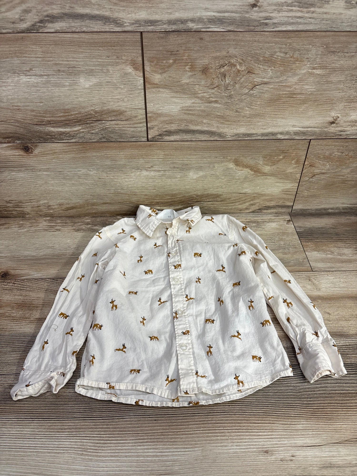 H&M Reindeer Print Button Up Shirt Cream sz 5T