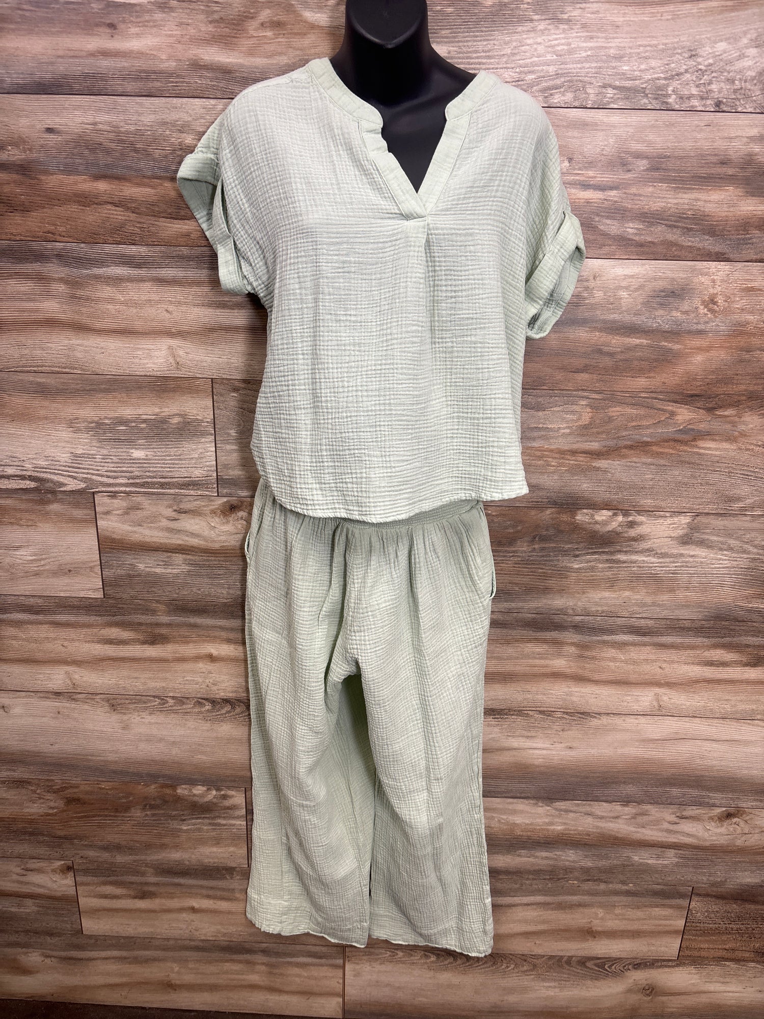 Isabel Maternity Muslin Shirt & Joggers 2pc Set Green sz Medium