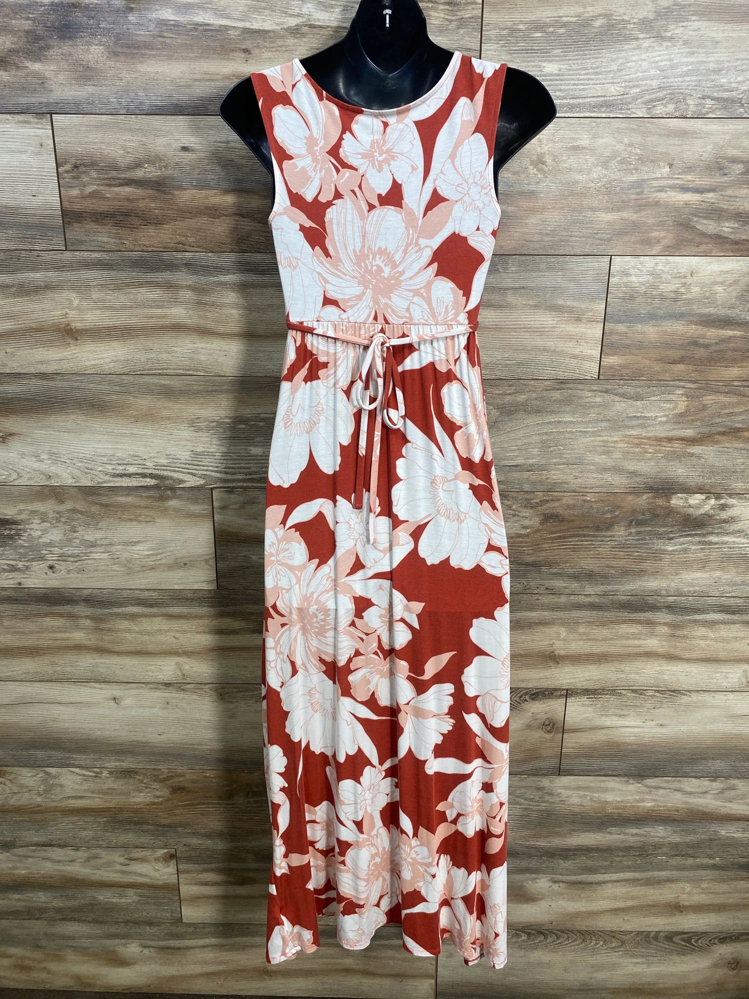 Isabel Maternity Sleeveless Floral Dress Brick sz XS - Rust / Maternity XS is backordered and will ship as soon as it is back in stock.
