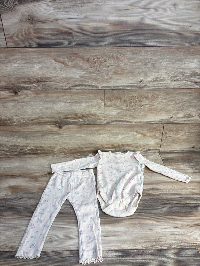 JoJo Maman Bebe Ribbed Bodysuit & Leggings 2pc Set Beige sz 18-24m