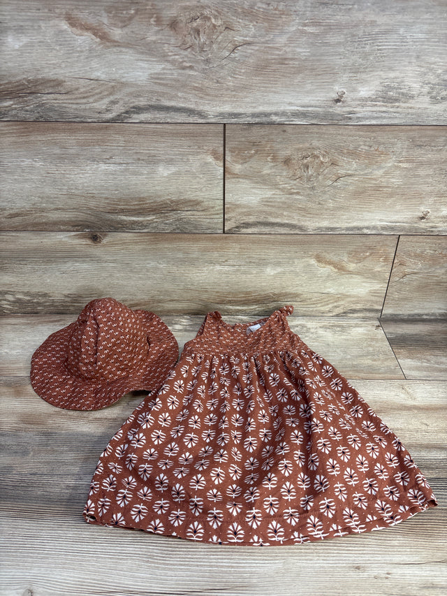 Just One You 2pc Sleeveless Dress & Hat Set Brown sz 18m