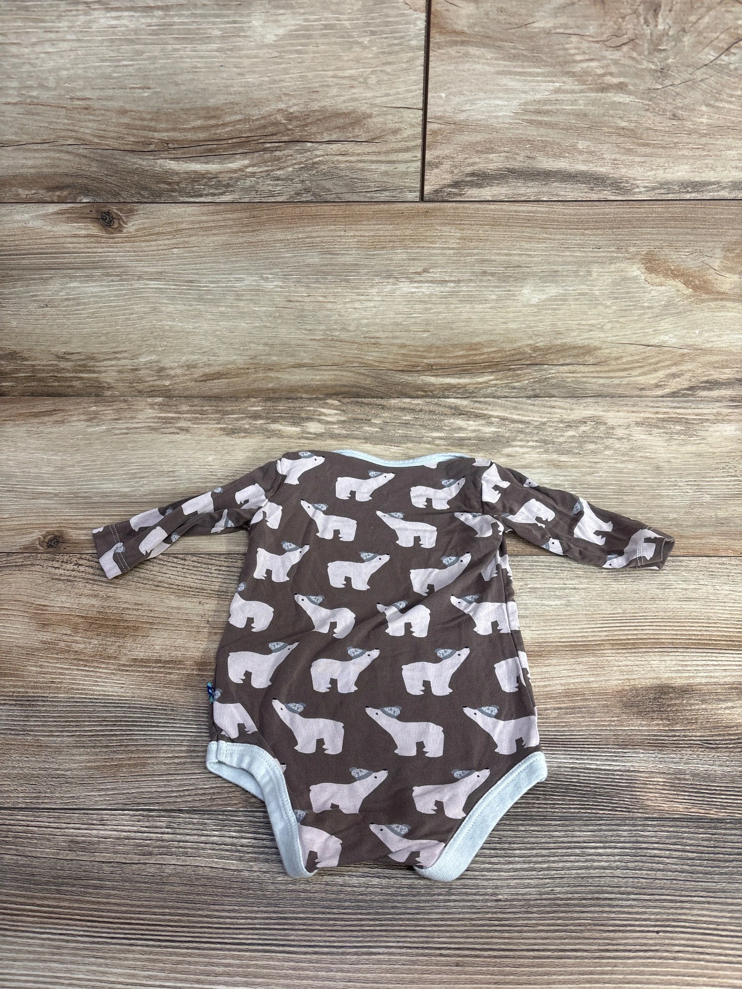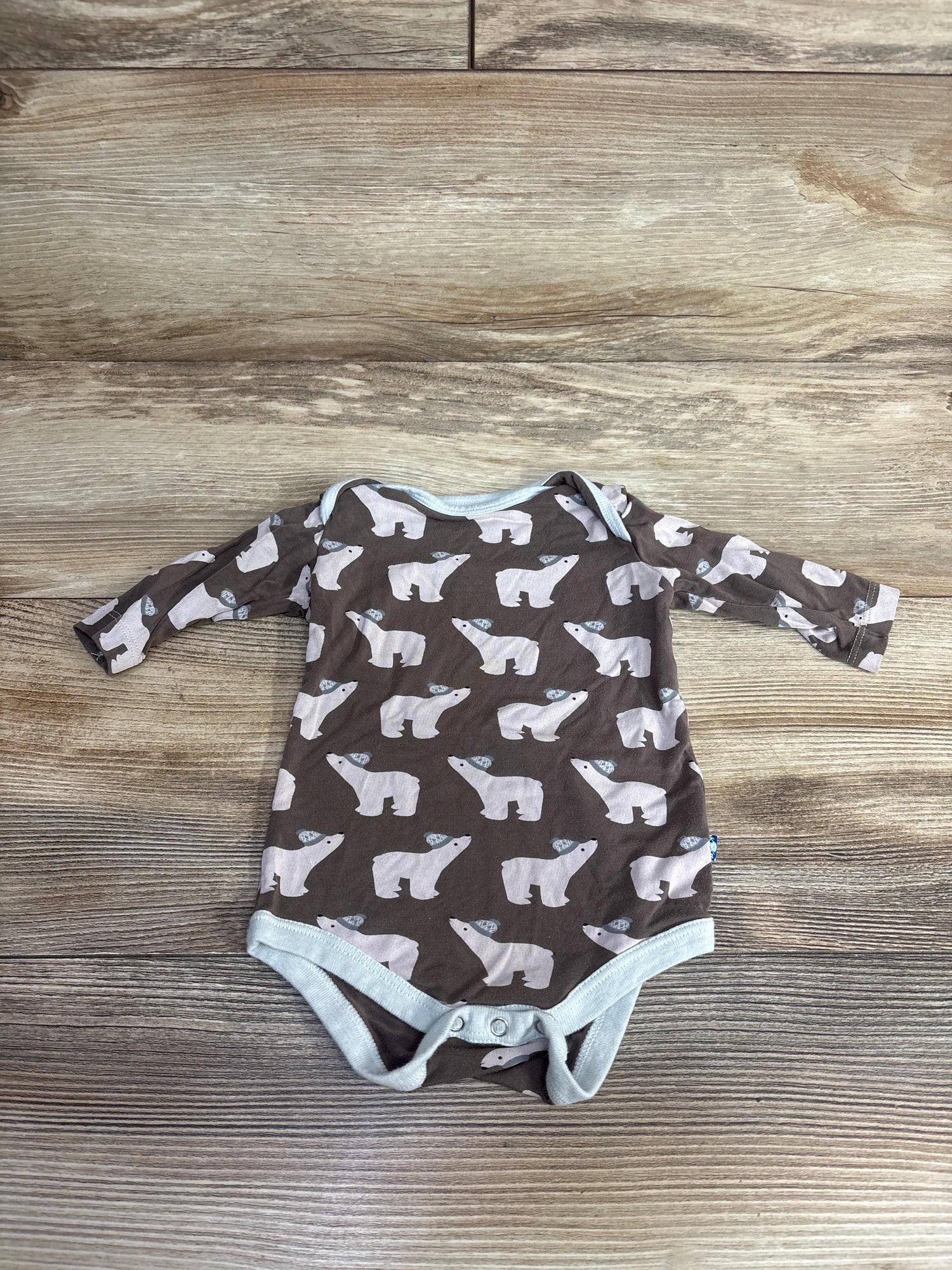 Kickee Kids Long Sleeve One Piece Polar Bear Print Brown sz 3-6m