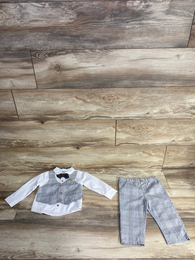 Little Lad 4pc Plaid Vest Suit Set White sz 12m