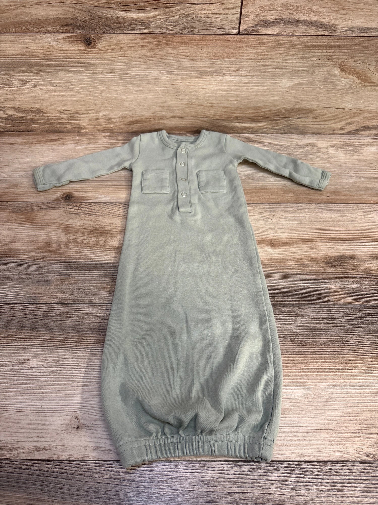 L'oved Baby Organic Snap Gown in Seafoam Green sz 0-3m - Sage / Newborn is backordered and will ship as soon as it is back in stock.