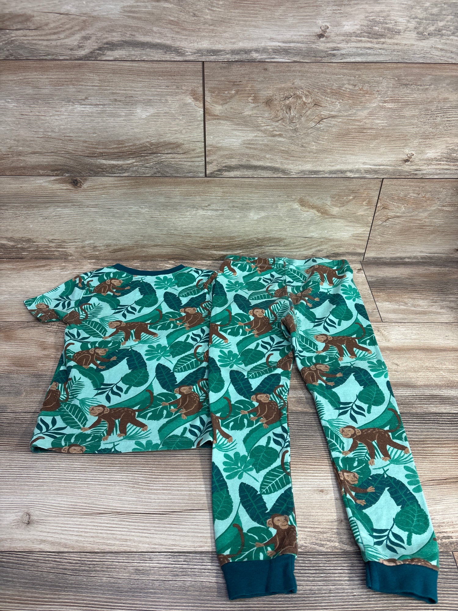 Member's Mark 2pc Organic Monkey Pajamas Green sz 5T