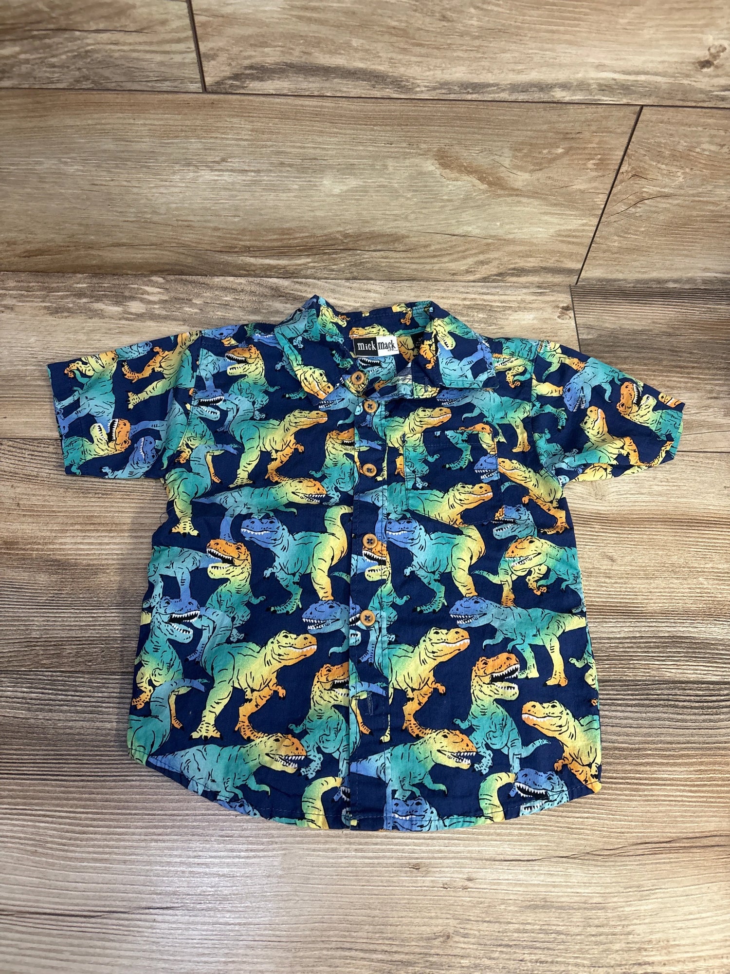 Mick Mack Dinosaur Button Up Shirt Blue sz 3T