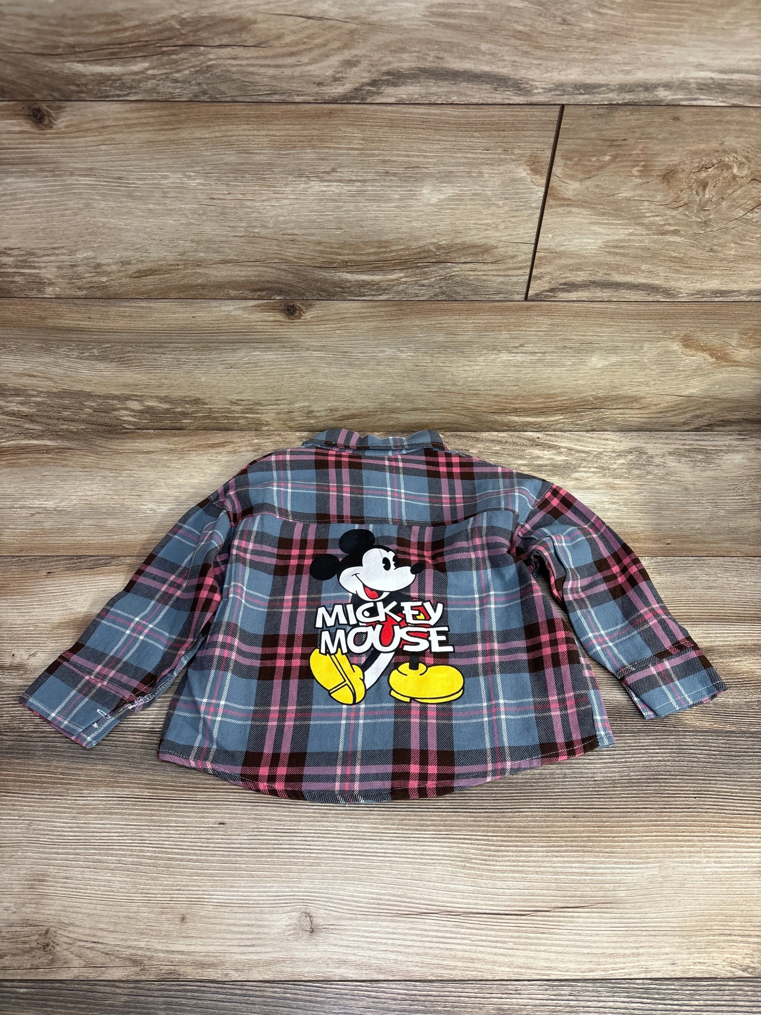 Mickey Mouse Button Up Plaid Shirt Blue sz 4-5T