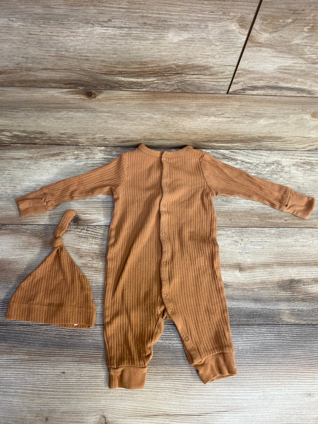 Modern Moments 2pc Ribbed Coverall & Hat Set Brown sz 0-3m
