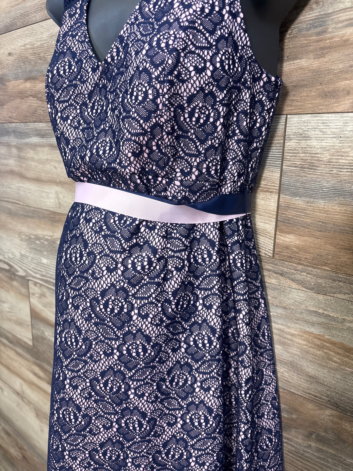 Motherhood Gender Reveal Lace Dress w/ Two Ribbons Blue sz Medium