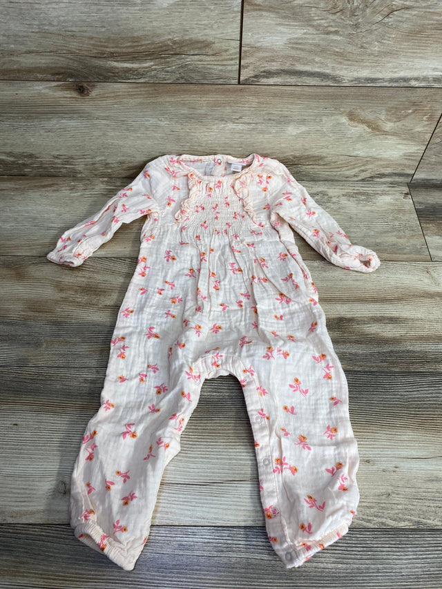 Cat & Jack Floral Smocked Coverall Pink sz 18m