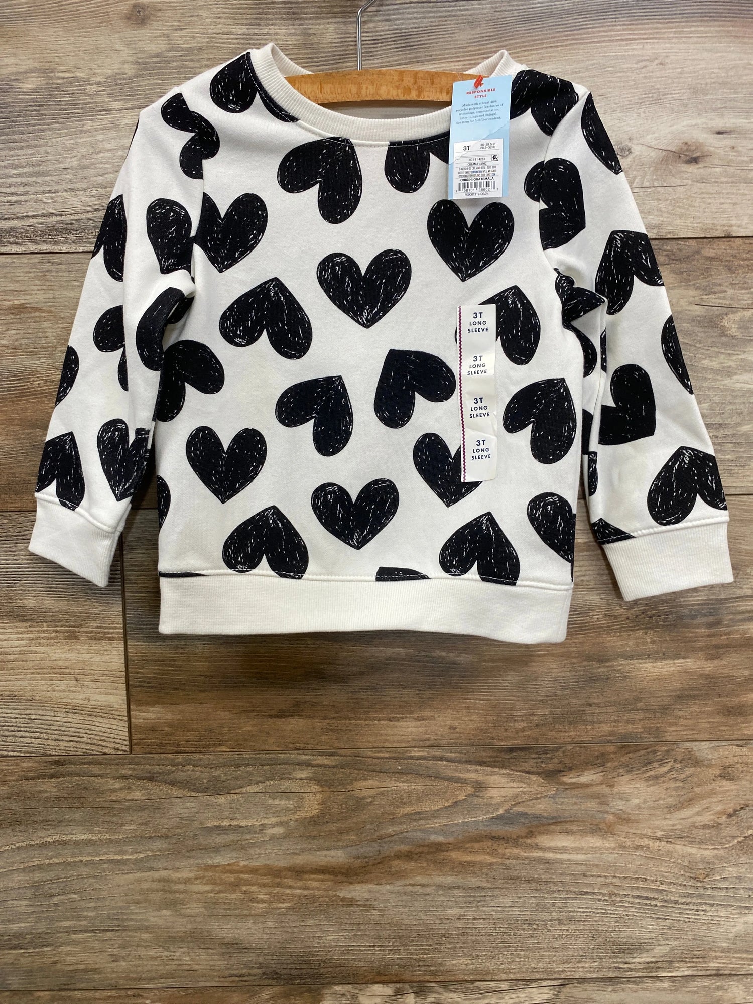 NEW Cat & Jack Heart Print Sweatshirt White sz 3T