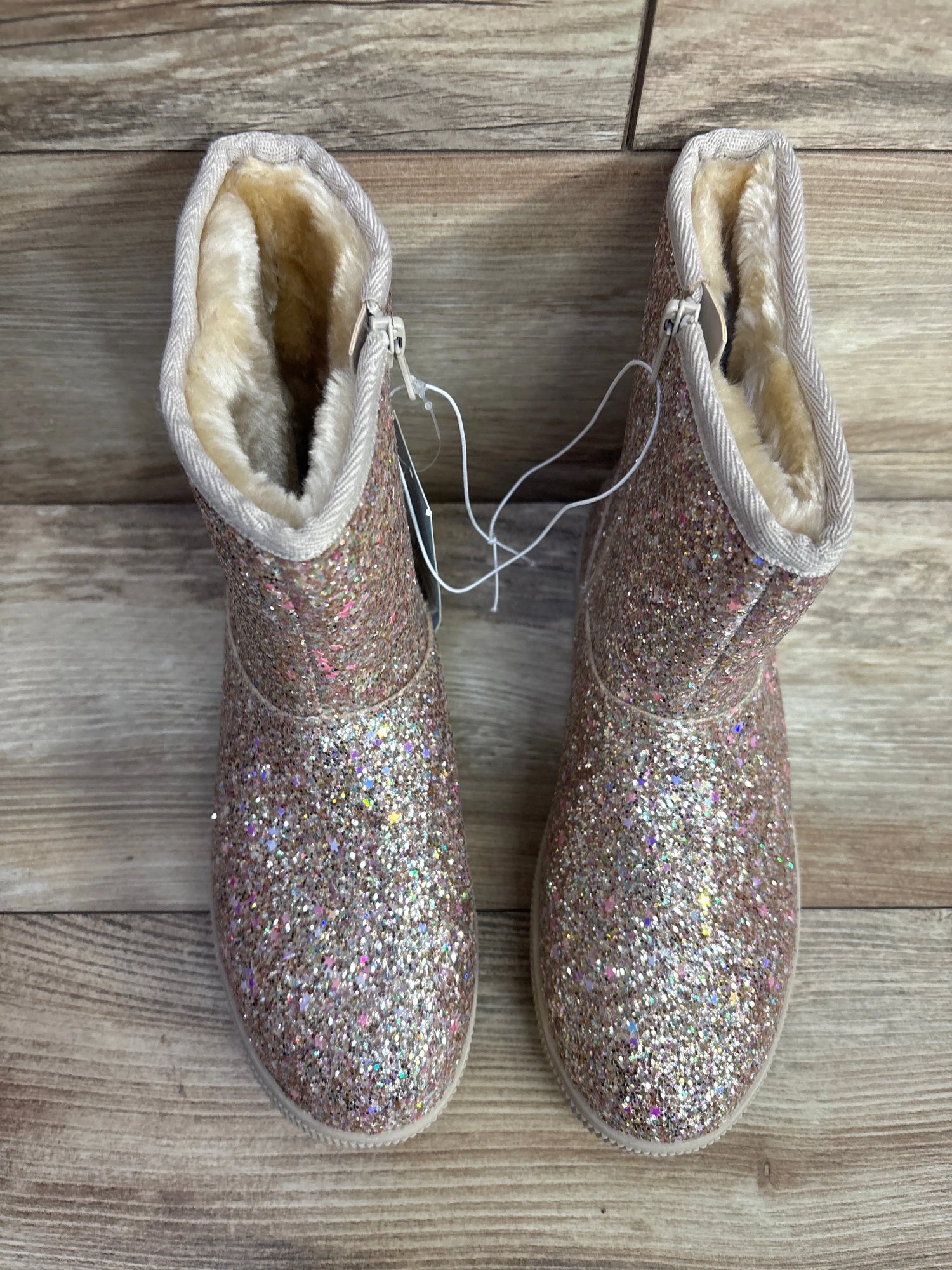 NEW Cat & Jack Holland Shearling Style Boots Glittery Gold sz 5Y