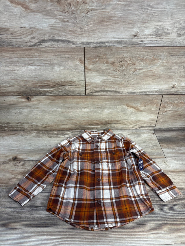 NEW Children's Place Plaid Button Up Shirt Brown sz 2T