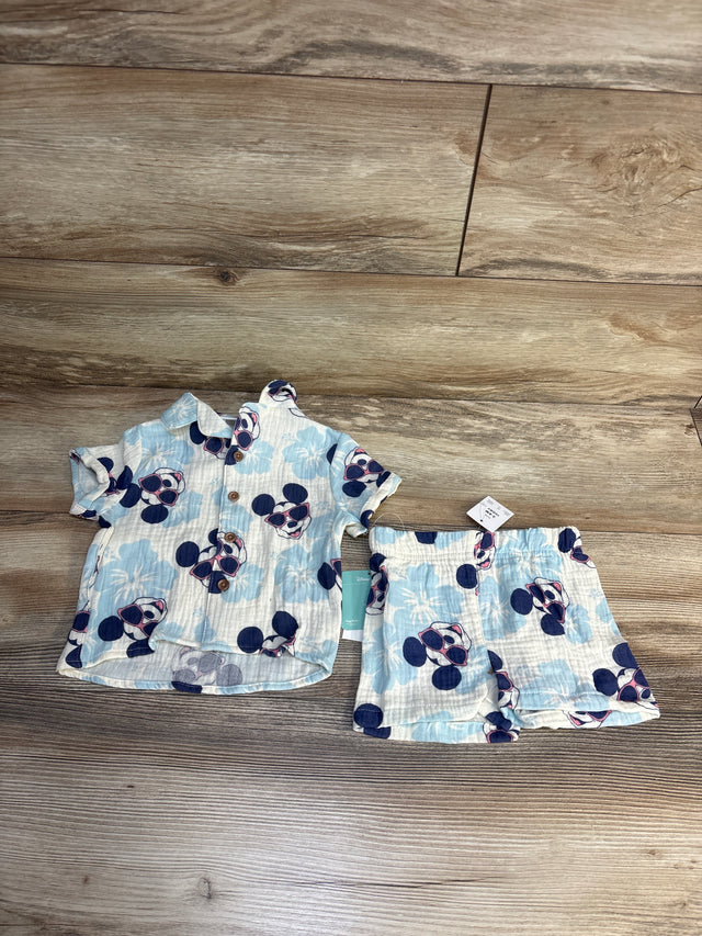 NEW Disney Baby 2pc Mickey Mouse Gauze Button Up & Shorts Set Ivory sz 3-6m