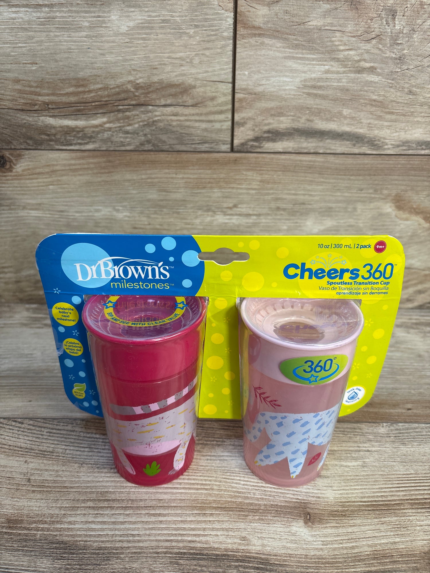 NEW Dr. Brown's Milestones Cheers 360 Spoutless Cups Pink 9m+ 2pk 10oz
