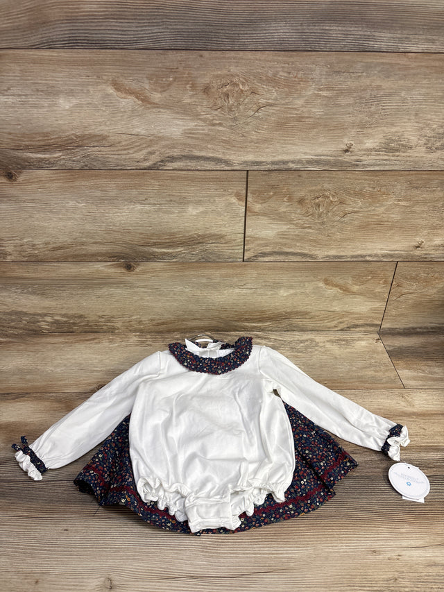 NEW Edgehill Collection Navy Floral Bodysuit & Skirt Set sz 18m