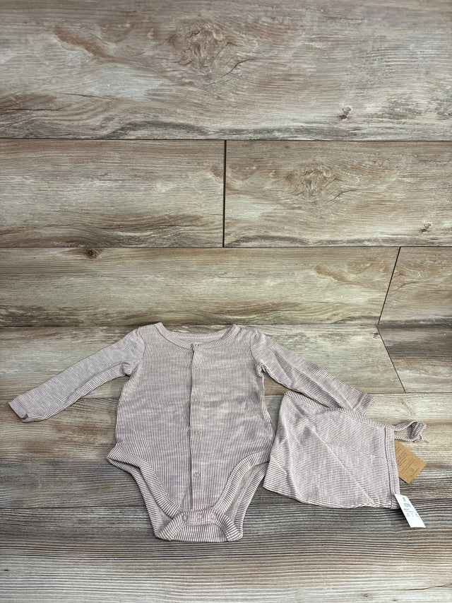 NEW Grayson Collective 2pc Ribbed Striped Bodysuit & Bonet Set Taupe sz 12m