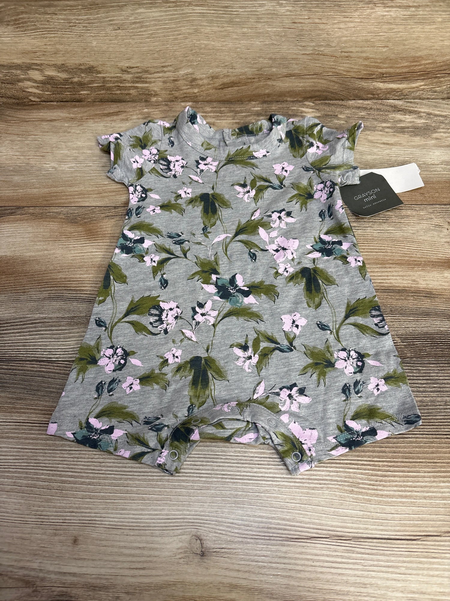 NEW Grayson Mini Floral Shortie Romper Grey sz 6-9m - Grey / 6m is backordered and will ship as soon as it is back in stock.