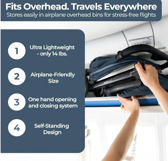 - The self-standing feature ensures none of the fabrics ever touch the ground, keeping your baby and stroller clean. The new backrest is now even higher, to accommodate growing children from birth up to 55 lbs.