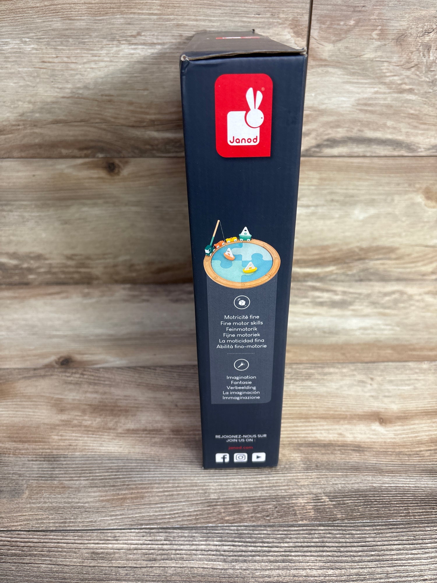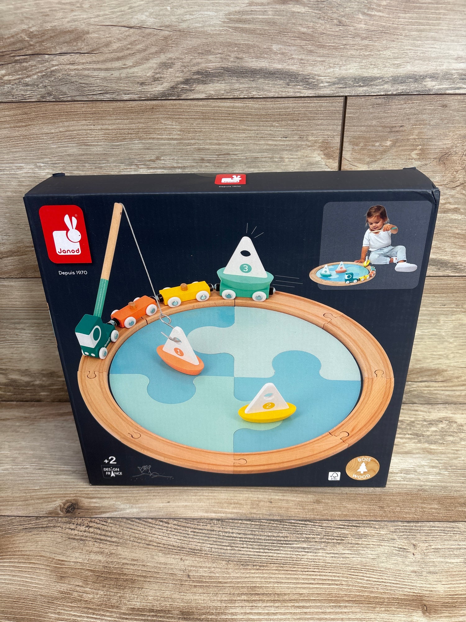 It's time to launch the boats!! This super truck equipped with 3 magnetic carriages transports 3 sailing boats ready to go out to sea. Thanks to the fishing rod, your child will be able to retrieve the boats to put them in the water, like a crane. The sea is easy to set up thanks to its 4 large puzzle pieces made of cardboard. The wooden circuit composed of 8 pieces is attached all around for the truck to circulate. Clever! The fishing rod is stored at the back of the cabin when not in use. Develops the imagination and stimulates dexterity.