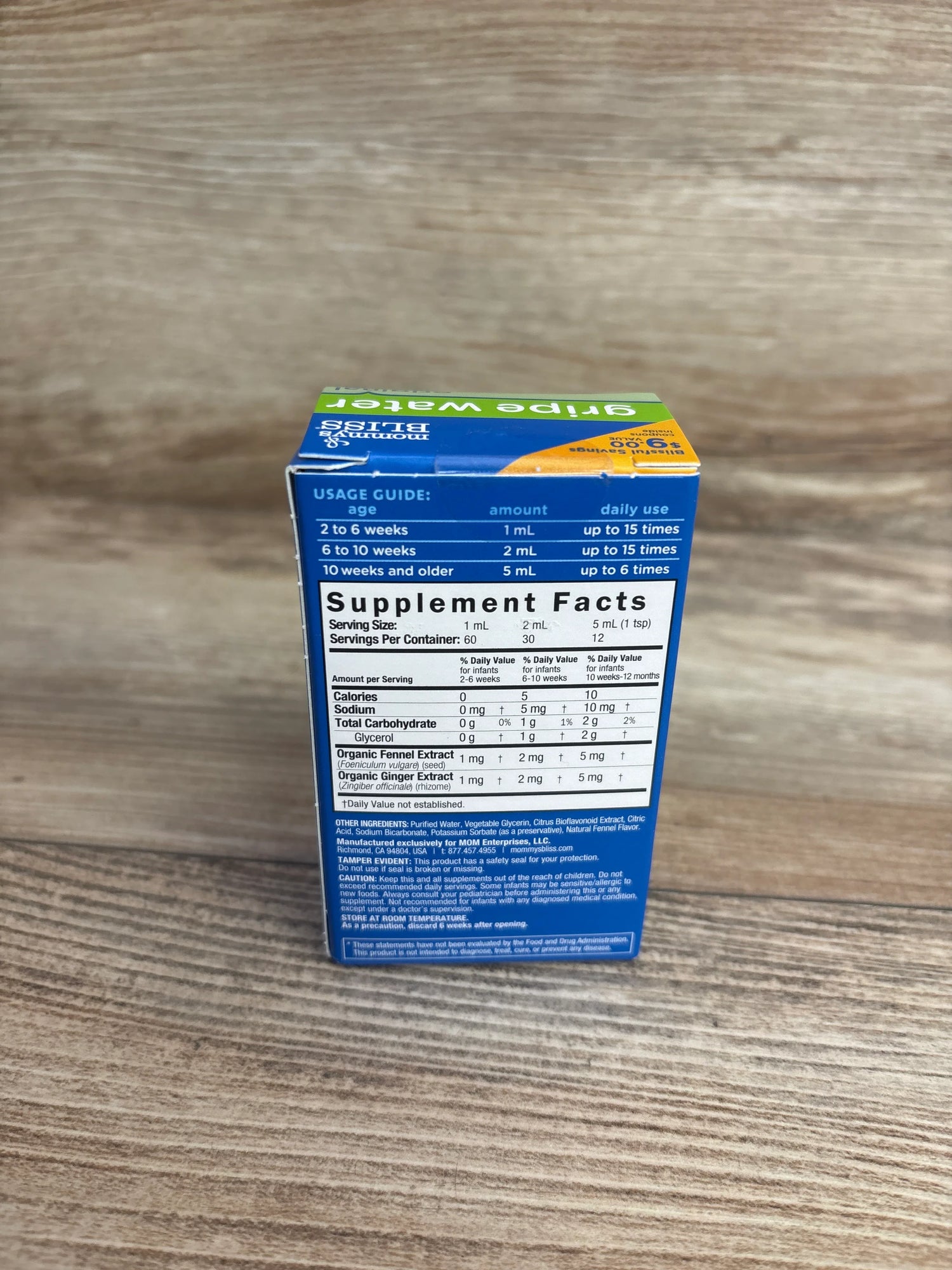 NEW Mommy's Bliss Baby Gripe Water - Gas & Colic Relief is backordered and will ship as soon as it is back in stock.