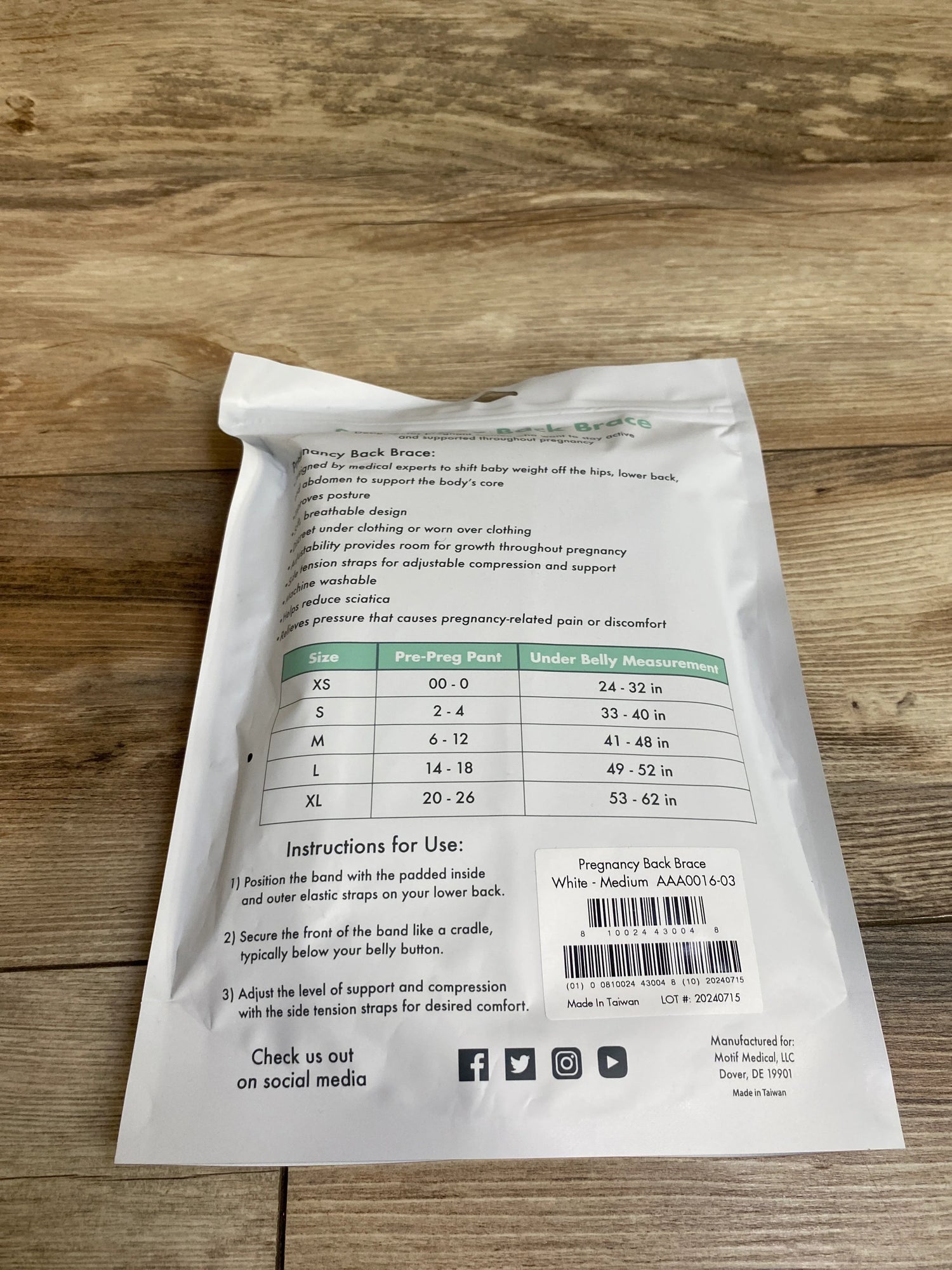 NEW Motif Pregnancy Back Brace White sz Medium is backordered and will ship as soon as it is back in stock.