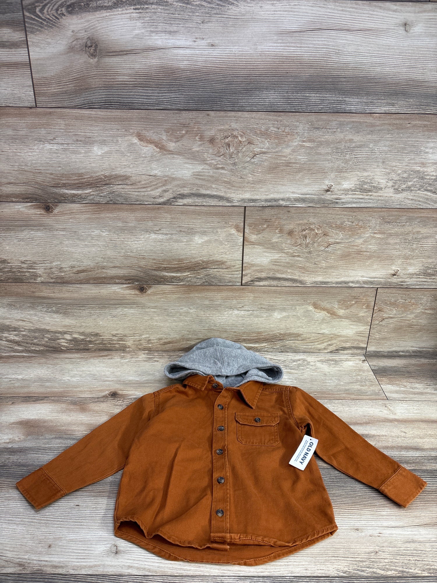 NEW Old Navy Hooded Button-Front Twill Shirt in Oolong Tea sz 3T