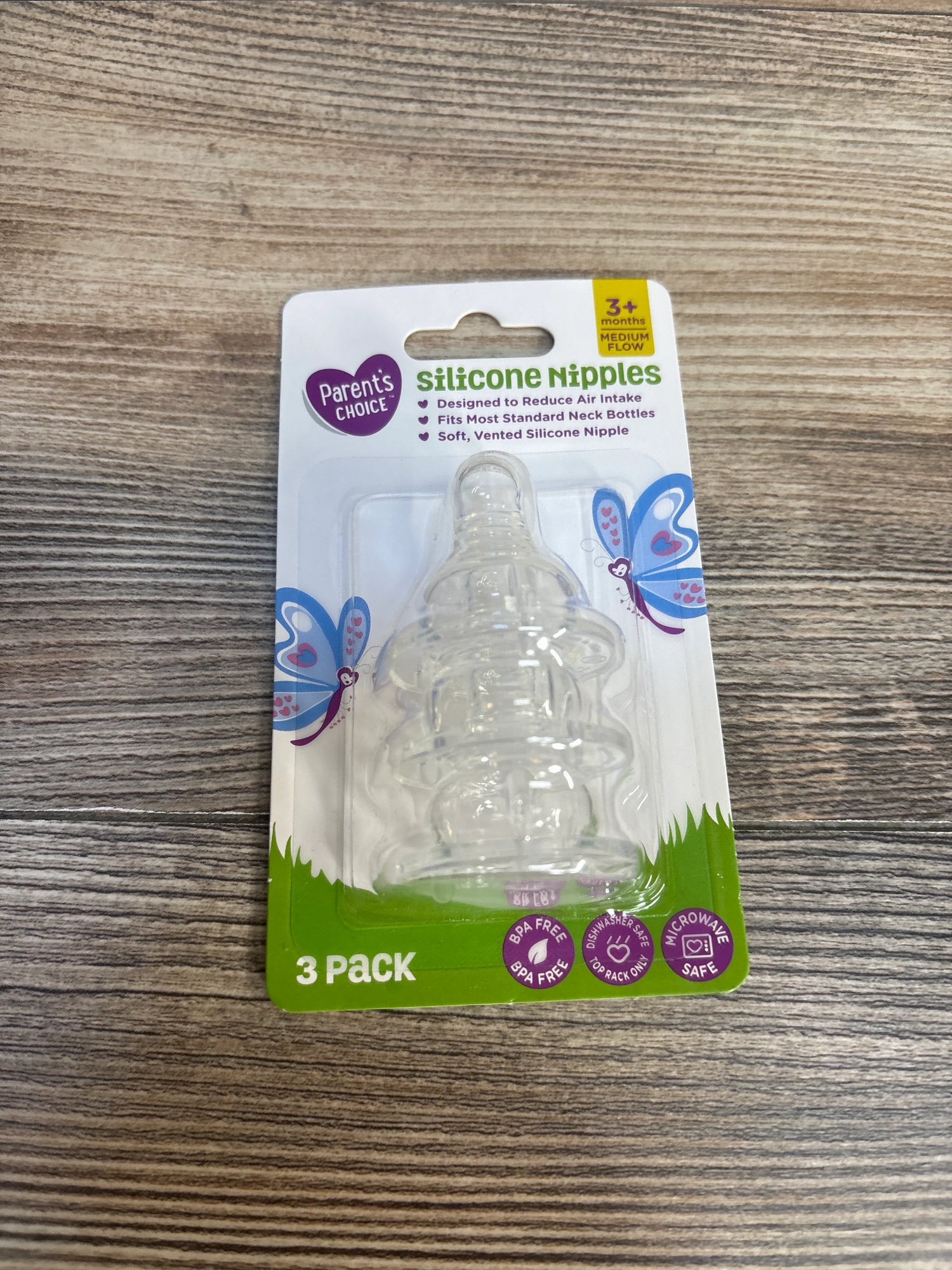 NEW Parent's Choice 3pk Silicone Nipples 3m+ Medium Flow