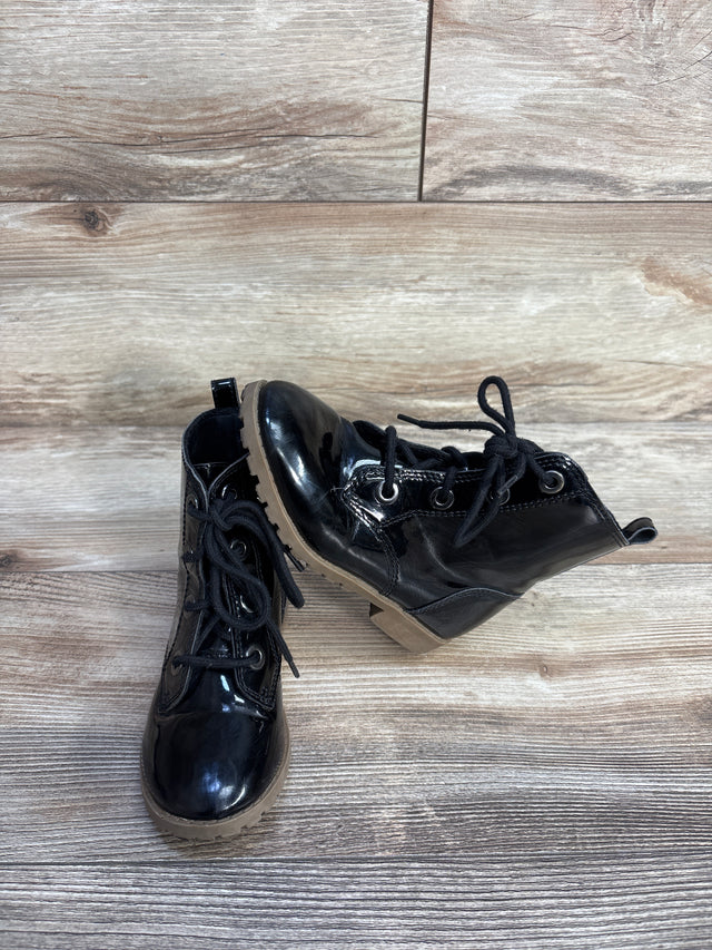 Old Navy Faux-Patent Leather Lace-Up Combat Boots Black sz 10c