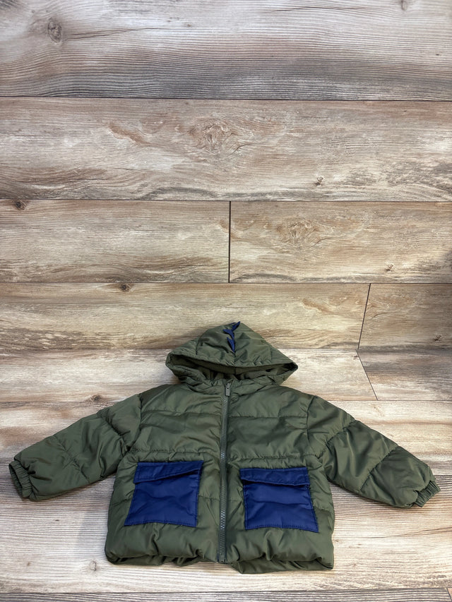 Old Navy Fleece Lined Puffer Jacket Olive sz 2T