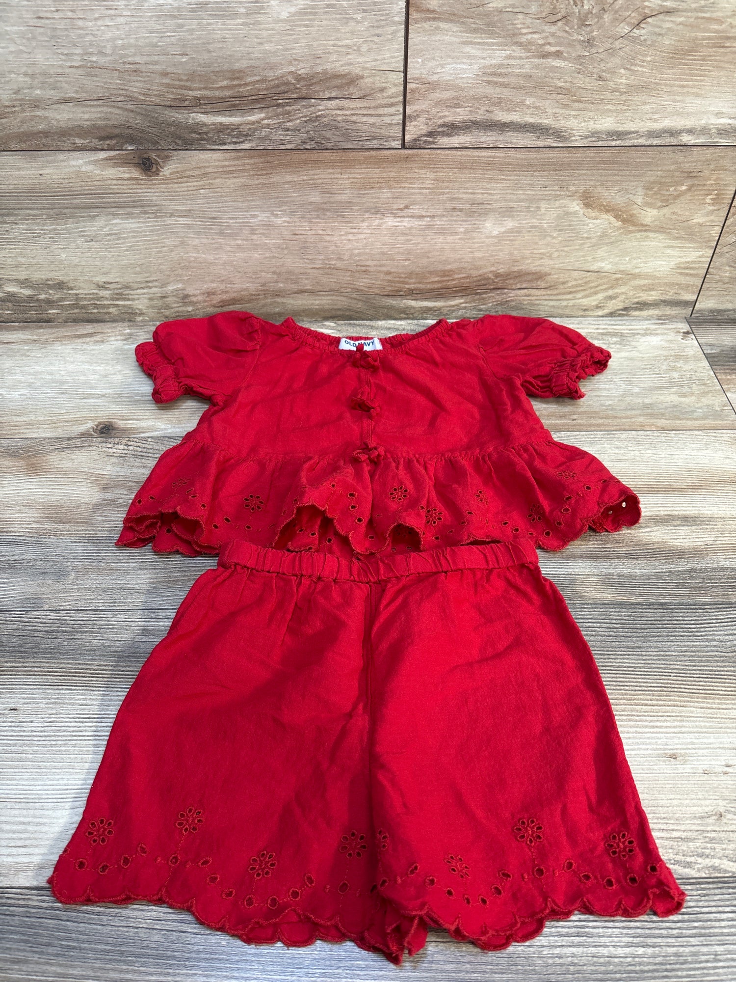 Old Navy Peplum Eyelet Top & Short Set in Robbie Red sz 4T